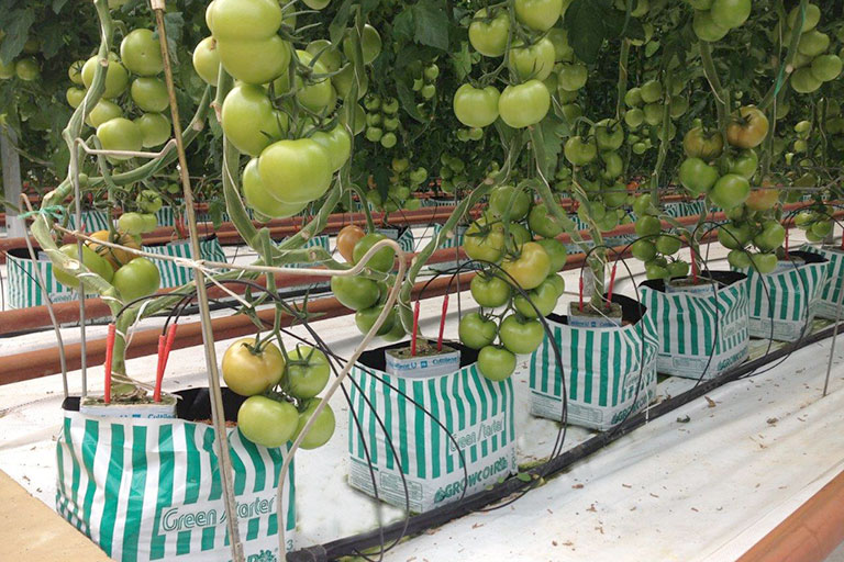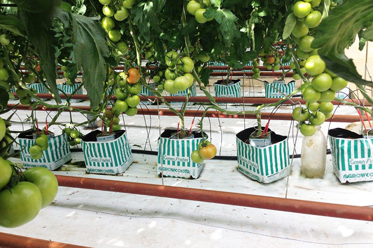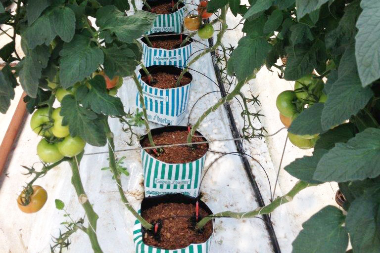 GROWCOIR Open Top Bag (OTB) for Tomatoes are designed to use in greenhouses and are being used as a complete hydroponics growing system. Tomato OTB is made from carefully selected coco peat and coco chip material, blended in different ratios. Topside open compressed coir block expands upwards in top side open UV treated black in white out polyethene (PE) bag.